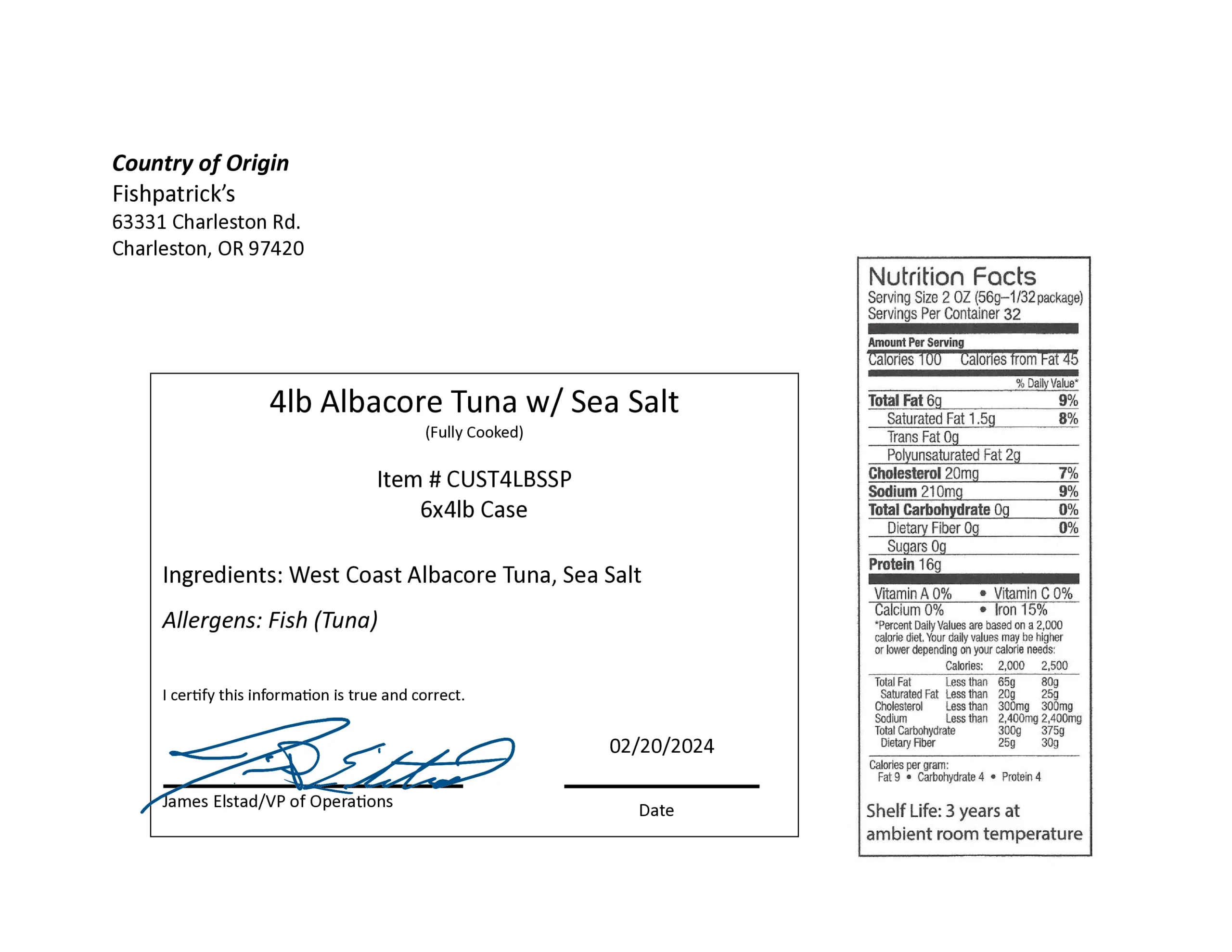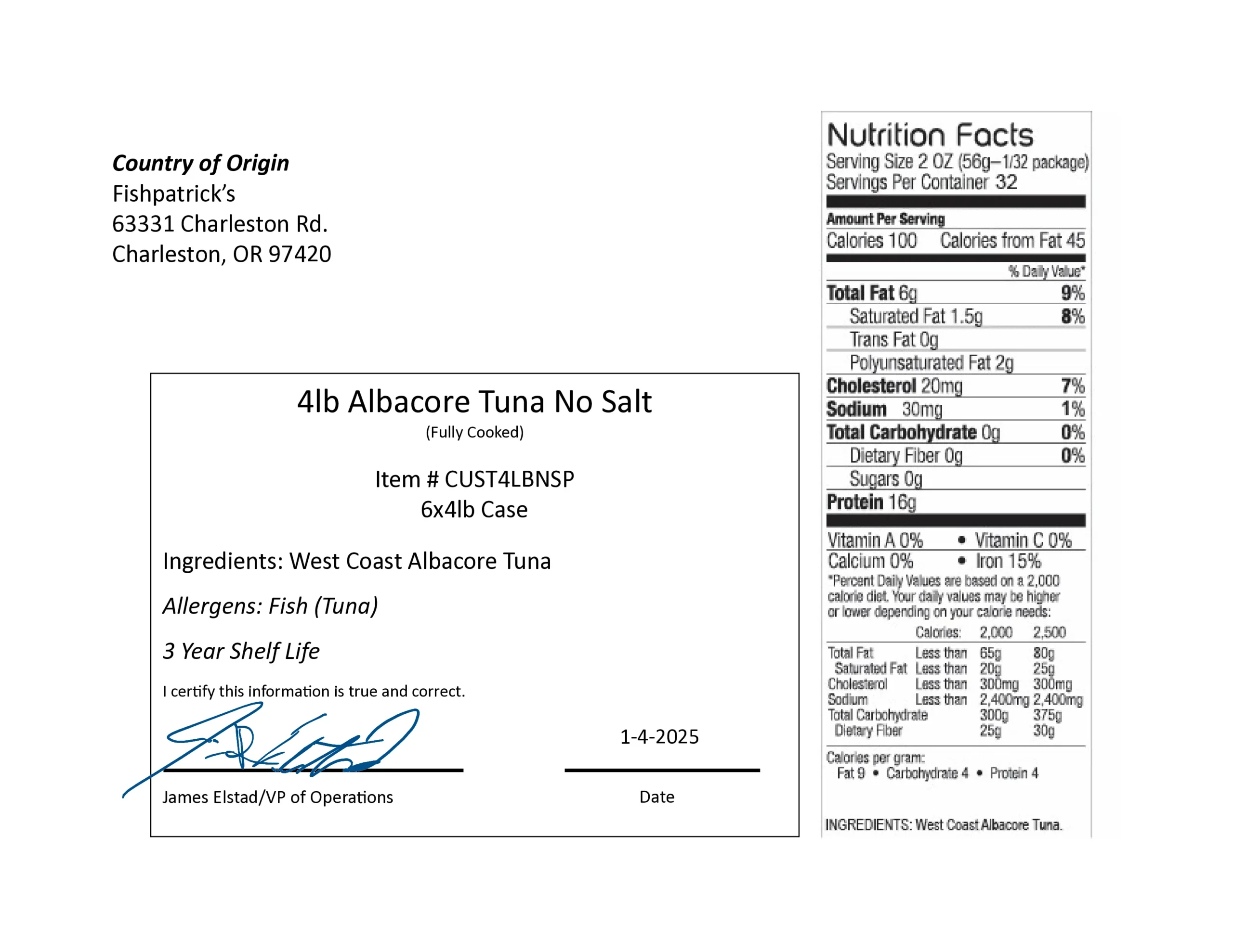 To purchase our Oregon albacore pouches using Farm to School grants or other school foodservice funds, start by emailing us to establish a connection and request samples. We will provide pricing and a Product Formulation Statement for the exact pouch item you want in your district, and either ship or personally deliver sample pouches. If you choose to move forward, we will provide our W9 to your district for processing Fishpatrick’s as a vendor. Create a Purchase Order and email it to us so we can schedule the delivery details and send an invoice tied to that PO. Delivery will happen quickly, and once your order is received in satisfactory condition, payment can be made within 30 days.